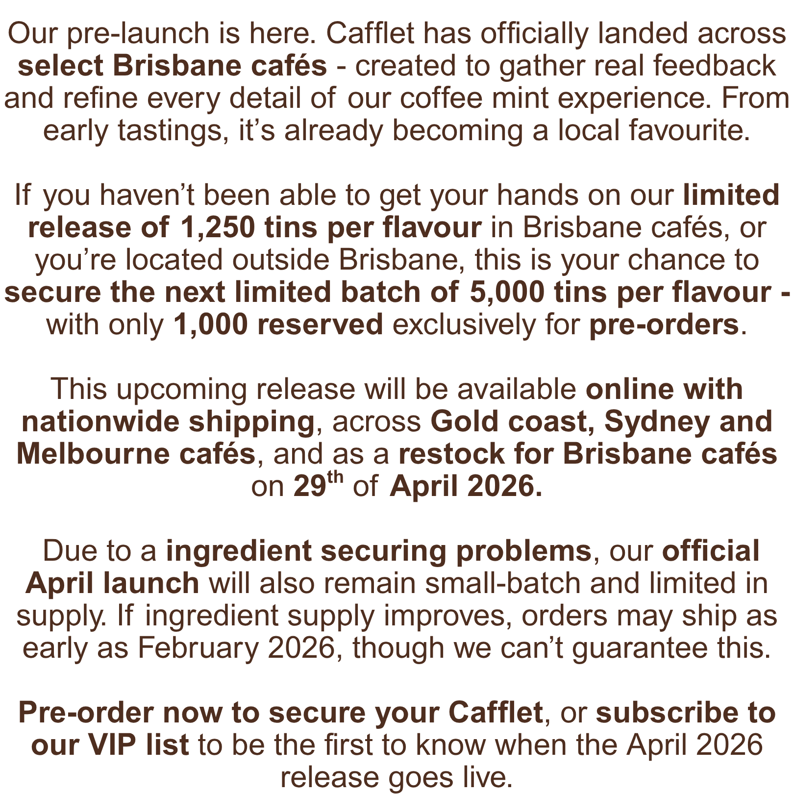 Cafflet will be available across select Brisbane cafés on 30/11/2025.